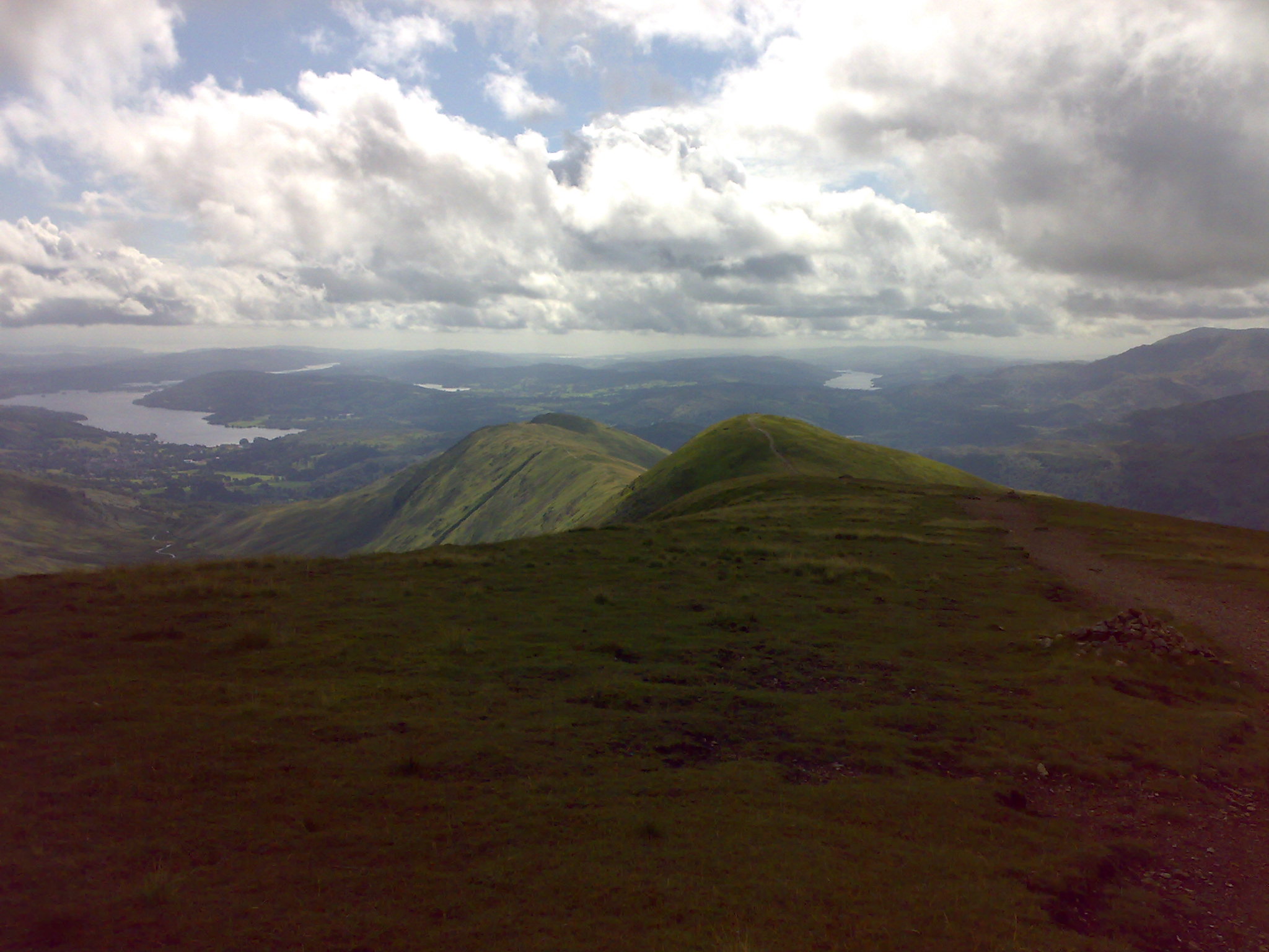 From Dove Crag the path gets a little sparse as it goes over approx 200yds of scaggy rock up Hart Crag. The path so appears more defined as it slowly descends before the the ascent to Fairfield. The walk despite the tiredness from the walk up, is the most awesome sight. With Helvellyn to the north and Scarfell Pike in front off to the east. When you look left to the south the view of Rydal Beck winding down the valley to Windermere. With the fine weather I had it was a very poetic atmosphere up there.
